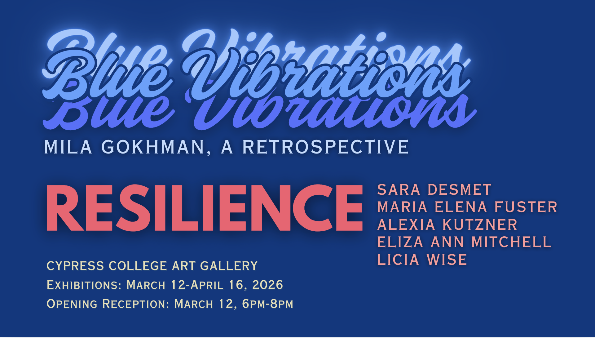 Together, RESILIENCE and BLUE VIBRATIONS affirm art not as escape or distraction in uncertain times, but as a sustaining force: a way of holding ground, asserting individual and community presence, shaping experience, and turning survival into something that shimmers.