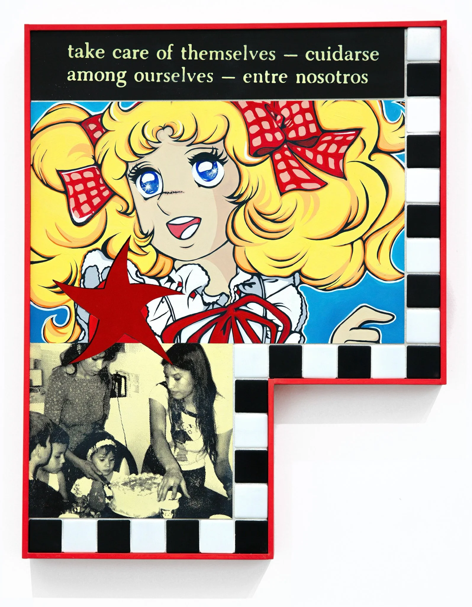 Screenprint on wood, acrylic, ceramic tile, mylar.