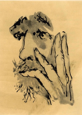 One of Tom Van Sant’s sketches of Gerald Heard reproduced in Faith and Freedom, pen and wash, 1956